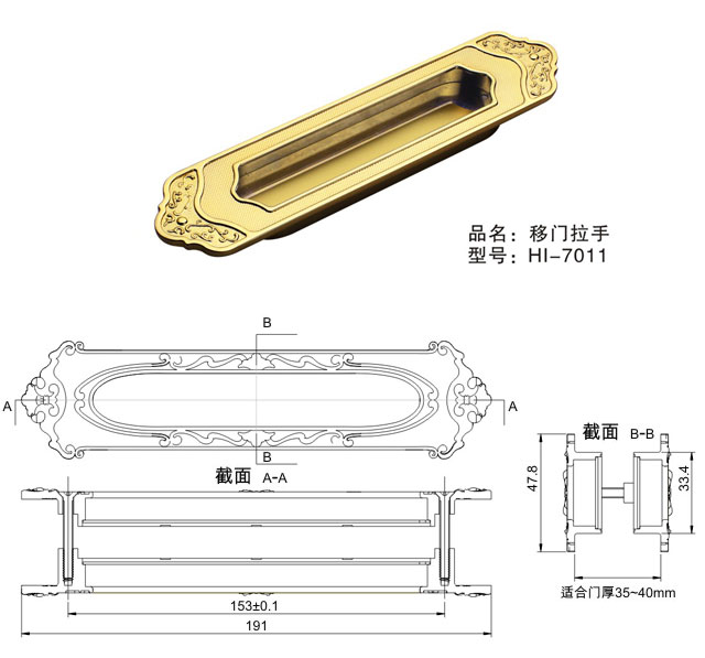 主要功能:安裝在抽屜的門或部件上,使用者通過(guò)手接觸拉手向門或抽屜傳遞啟閉力。