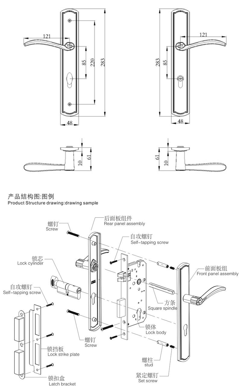 4安裝內(nèi)外面板,使把手轉(zhuǎn)動順:擰緊螺釘(如上圖:E-F)。