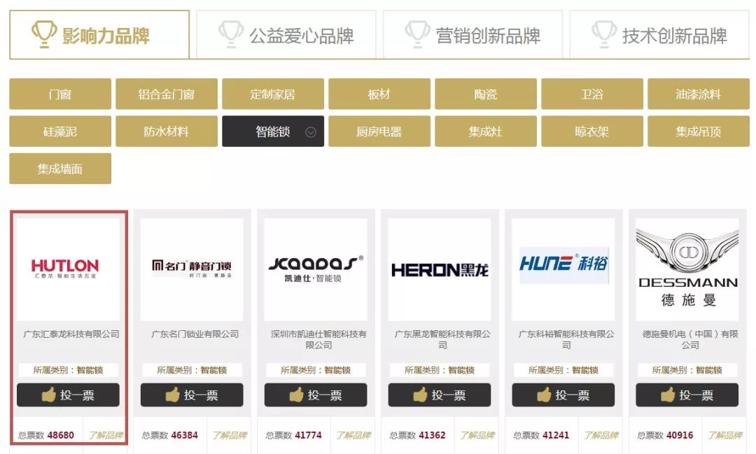 評(píng)選中,匯泰龍位列“智能鎖影響力品牌”榜單首位。