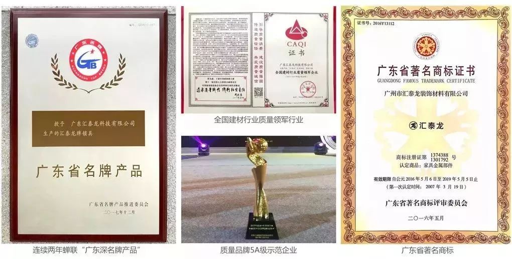 誠信經(jīng)營,榮譽見證。23年來,匯泰龍因為守合同重信用,得到眾多權(quán)威機構(gòu)的認可,榮獲“中國質(zhì)量服務(wù)信譽AAA企業(yè)”、“全國建材行業(yè)質(zhì)量領(lǐng)軍企業(yè)”、“全國家居業(yè)“質(zhì)量品牌5A級示范企業(yè)”、“全國產(chǎn)品和服務(wù)質(zhì)量誠信示范企業(yè)”等榮譽稱號。
