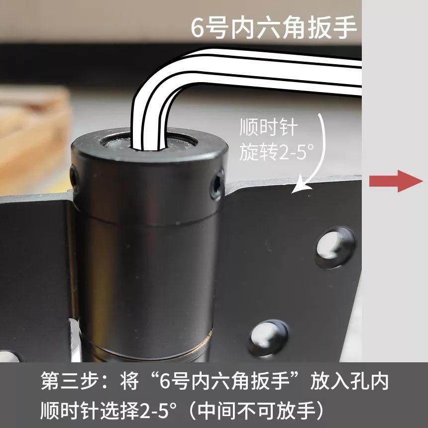 完成上面的步驟,合頁(yè)的液壓功能即開啟,若定位角度過大,可重復(fù)第二步及第三步進(jìn)行調(diào)節(jié)喲~