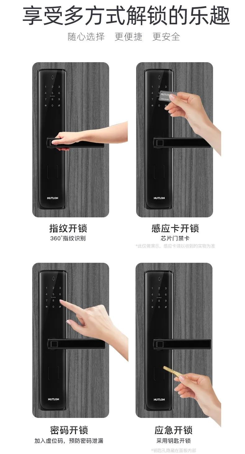 匯泰龍A11智能鎖,支持指紋、密碼、感應卡和應急鑰匙四種開鎖方式。