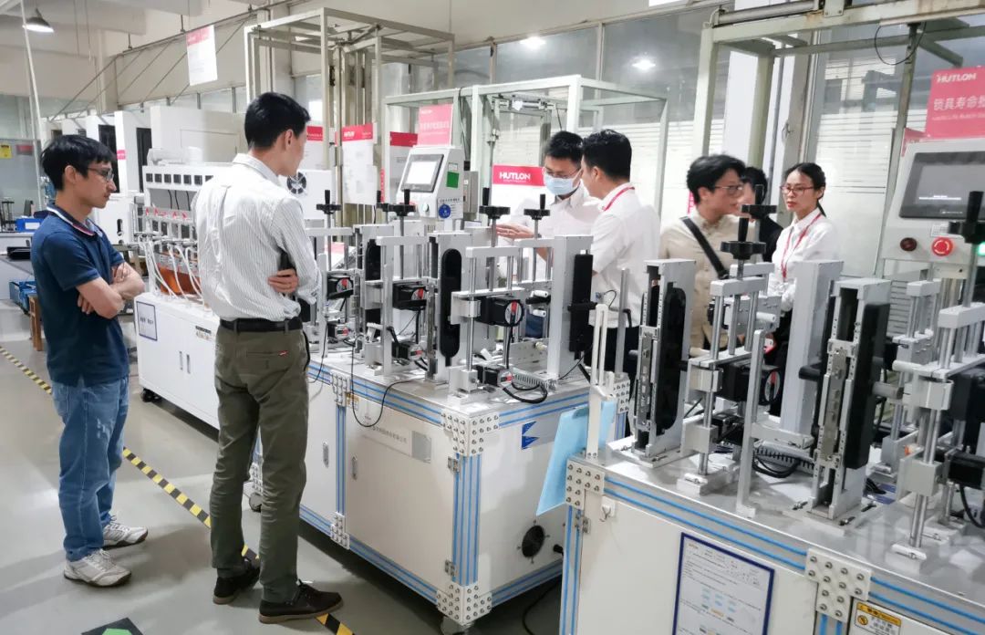 佛山市市場監(jiān)督管理局、南海區(qū)市場監(jiān)督管理局領(lǐng)導(dǎo)及專家在匯泰龍標(biāo)準(zhǔn)化試點管理辦公室的指引下,先是參觀了匯泰龍CNAS產(chǎn)品檢測實驗中心,實地考察匯泰龍在精品五金與智能門鎖品控方面的檢驗實力。