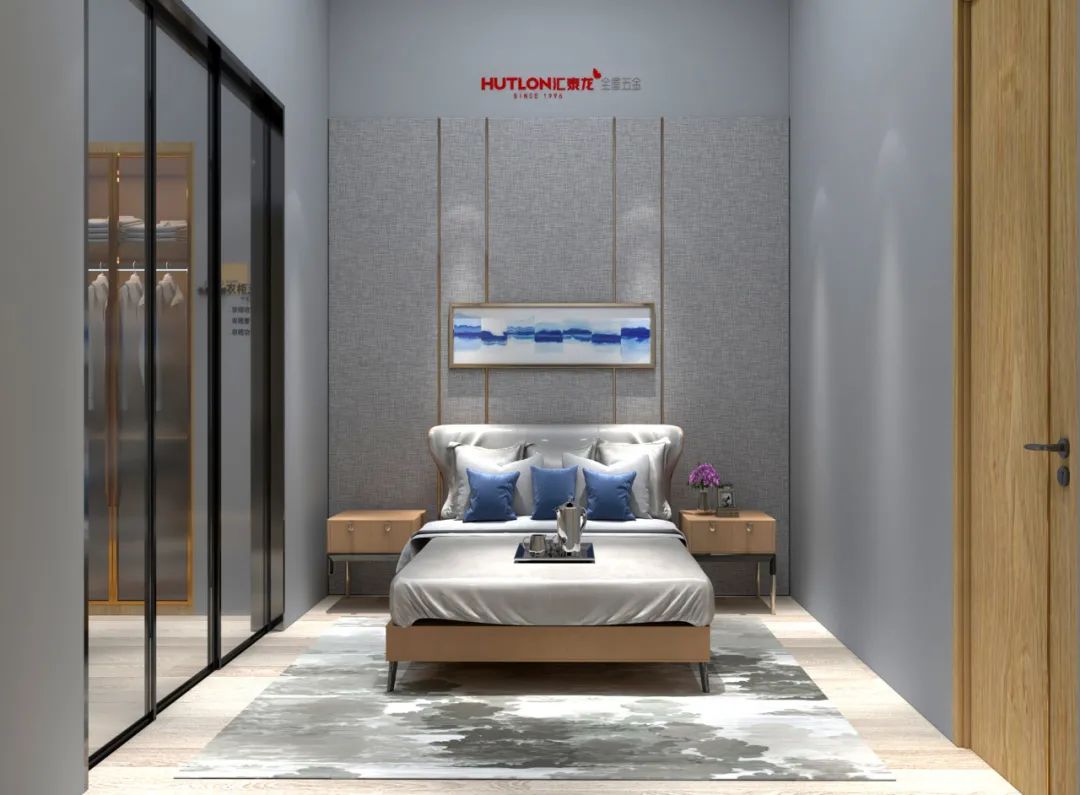 以“匯泰龍全屋五金定制+”為主題的匯泰龍展館,采用高端、極簡(jiǎn)的中性灰為主色調(diào),改變產(chǎn)品直接陳列的展示模式,以匯泰龍全屋五金一站式解決方案為基準(zhǔn),將全屋五金產(chǎn)品融合到場(chǎng)景中,一比一還原家居場(chǎng)景,令五金的魅力看得見,摸得著,感受得到。