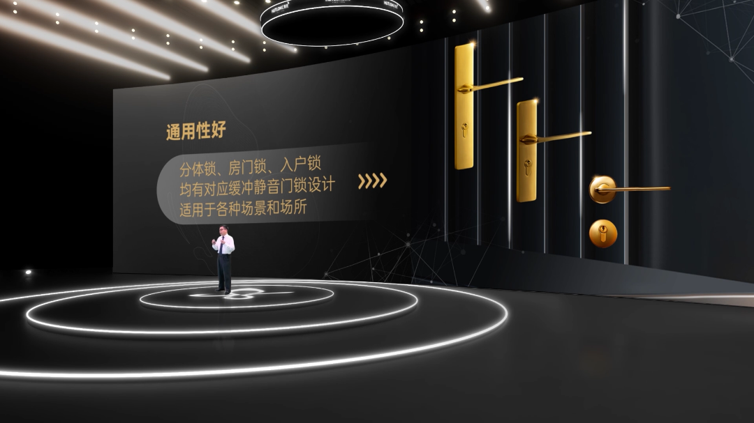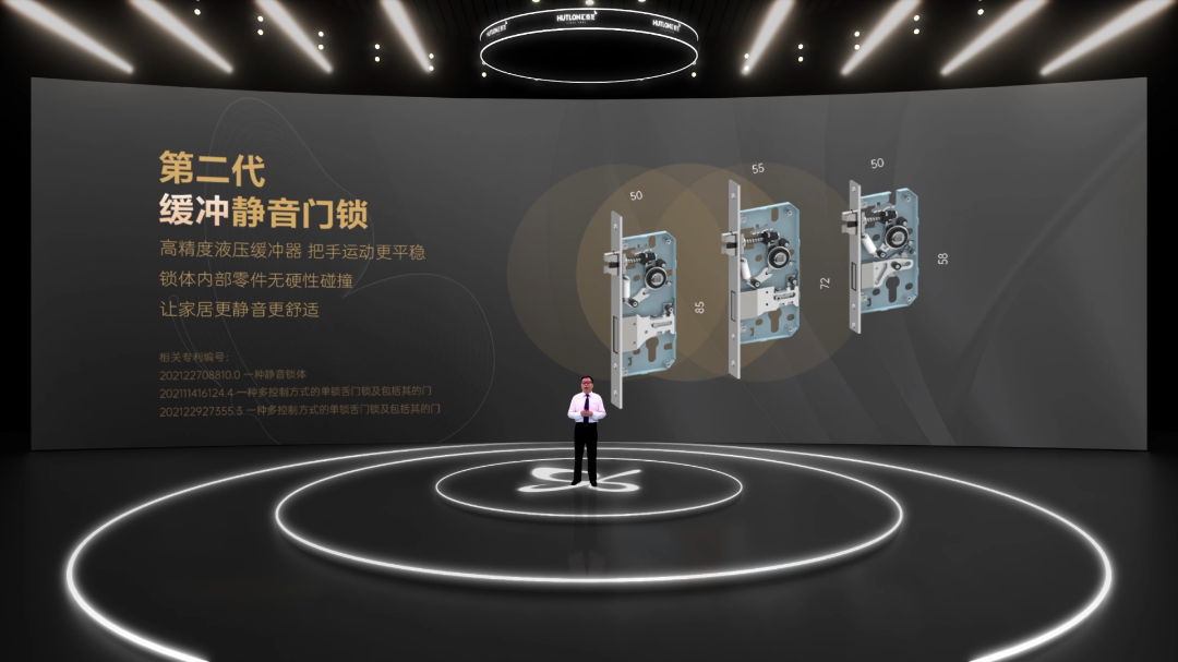 為滿足人們對舒適家居環(huán)境的向往,張總在演講伊始指出匯泰龍緩沖靜音技術,廣泛應用在緩沖靜音門鎖、緩沖鉸鏈,緩沖道軌、緩沖移門吊輪,以“緩沖的視覺感知+靜音的聽覺感知”,實現(xiàn)舒適安靜的體驗。而其中,緩沖靜音門鎖是匯泰龍緩沖靜音技術應用的主要產品。