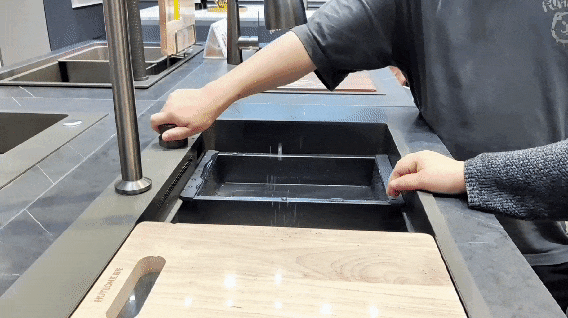 中島水槽柜系統(tǒng),帕羅斯、克里特系列水槽,洗瀝切三合一,靈動(dòng)分區(qū);搭配的龍頭擁有多種出水方式,滿足不同喜好。