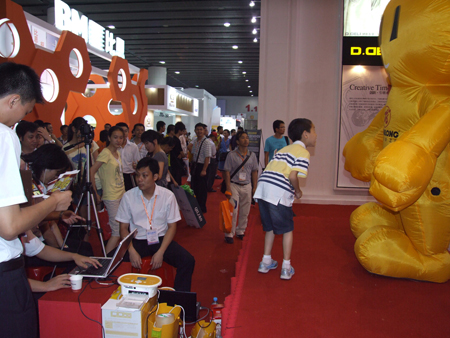 展館外,創意無限的展臺形象,逗留在匯泰龍展臺前的觀眾爭先合影留念,一分鐘快照項目讓觀眾留下了美好的回憶。可愛逗趣的匯泰龍吉祥物——星Q互動,吸引了眾多參觀者的眼球,匯聚了全場最高的人氣,讓匯泰龍展臺一如往年成為展會的人氣中心。