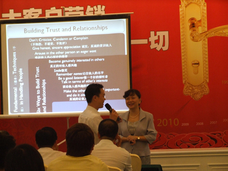 此次培訓由匯泰龍公司主辦,長沙立恒裝飾材料公司協(xié)辦,在長沙明城國際大酒店的白宮廳如期舉行,此次培訓依然邀請了知名企業(yè)培訓講師、卡耐基授權(quán)講師(IOWA)、美國禮儀協(xié)會海外會員