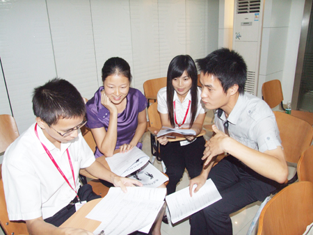 楊副總在課程中指出,電話形象由:聲音、內容、表情、態度、時間感等因素構成。良好的電話禮儀其實就是做好這幾個因素的控制。接下來,楊副總分別對各個因素合適的與不合適的標準作了一一說明。除了以上在維護自己的電話形象以外,另外一個重點是必要的電話禮儀,比如:不在打電話時吃東西、不對著話筒打哈欠、掌握打電話的時間、與外商通話注意時差等等。由表及里,由理論到實踐,楊副總慢慢把大家引入到匯泰龍日常接打電話的工作中來,同時提出了匯泰龍接打電話的標準姿勢、前臺接聽、對外撥打、內部撥打與接聽的標準用語和規范。