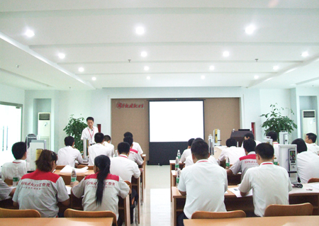 此次培訓安排在匯泰龍第一款電子指紋密碼鎖投放市場前期,目的在于讓相關管理者和市場營銷人員提前熟悉電子鎖相關產品知識,支持指紋密碼鎖在研發、生產及銷售過程的正常運作。黎宇先生的課程主要分為五大板塊:智能電子鎖產品介紹、產品的操作使用、電子鎖的安裝與調試、維護與保養以及售后服務。培訓過程采用多媒體教學與產品現場展示相結合,把部分電子鎖現場拆分讓學員親自操作等方式教學,取得了良好的教學效果。
