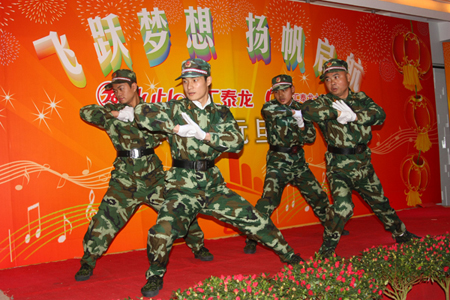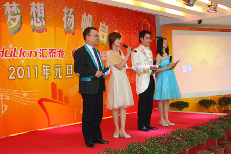 新年的鐘聲即將敲響, 豐收的喜悅正在綻放,20101230日晚7點,主題為“飛躍夢想,揚帆啟航”的匯泰龍2011年元旦晚會在佛山南海生產基地多功能會議廳拉開惟幕
