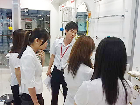 這一次的培訓是營銷中心例行的一次內訓,打破了傳統的課堂學習的模式,把所有的學員帶到匯泰龍五金衛浴專賣店,親身去體驗產品,更直觀的了解產品,學習方式更加靈活和有效。