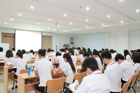 培訓一開始,周老師就簡明扼要地向大家說明了跟進工作的目的和重要性,跟進工作對目標達成的重要意義及溝通的方式與技巧。周老師就邀請了十名學習到臺上參與互動游戲,從“傳話”游戲中讓大家領悟到溝通的幾種要素和注意事項,從而引申出跟進工作最重要的是良好的溝通。從實際的案例中為大家以后的工作跟進提供有效的借鑒和指導。