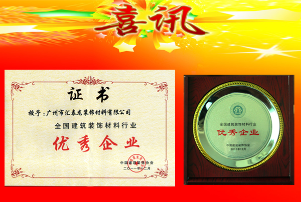 此次會議歷時兩天,在12月3日下午,中國建筑裝飾協會宣布“全國建筑裝飾材料科技創新獎”和“全國建筑裝飾行業推廣應用產品”名單并頒發獎牌。匯泰龍裝飾材料有限公司在此次會議上分別榮膺四項榮譽:全國裝飾材料行業優秀企業、全國裝飾材料行業科技創新獎、董事長