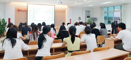 本次培訓課程總共三個小時,分為兩個部分:電話禮儀基礎知識講解和演練。講師首先講解了學習電話禮儀的重要目的、電話禮儀形象塑造、通話注意事項等等。在演練過程中,全體學員分為八個討論小組,每一組學員代表上臺當場表演,由下面的學員通過剛剛學習的禮儀知識對表演者進行點評,整個培訓課程氛圍活躍,互動性強,取得了良好的培訓效果。