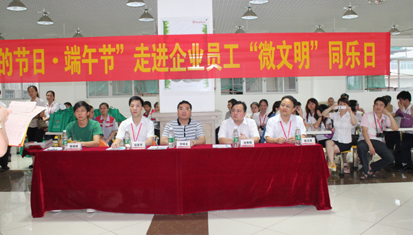 6201830,由佛山里水鎮宣傳文體辦、里水鎮團委、匯泰龍公司聯合舉辦的“我們的節日·端午”——企業員工同樂日活動在匯泰龍公司佛山生產基地員工食堂隆重舉行。佛山里水鎮宣傳文體辦副主任符銘全、里水鎮經濟促進局產業發展辦副股長孫勉毅、里水鎮工會專員陶紹海、匯泰龍公司人事行政中心總監任志平先生、總經理助理熊衛軍先生出席了本次活動并擔任包粽活動的評委,匯泰龍公司以中心為單位參與比賽的十支隊伍參與了本次活動。