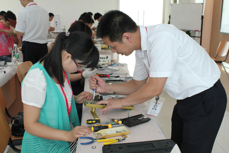 本次培訓(xùn)主講為公司電子鎖事業(yè)部黎宇先生,課程內(nèi)容有智能鎖市場分析;匯泰龍智能電子鎖介紹;操作使用;安裝與調(diào)試;售后服務(wù)。由于參與本次集訓(xùn)的人員多為一線銷售人員及售后安裝服務(wù)人員,所以本次的培訓(xùn)著重于介紹產(chǎn)品內(nèi)部結(jié)構(gòu)原理,讓學(xué)員更深入地了解電子鎖構(gòu)造和工作原理。所有學(xué)員均配備一把實習(xí)專用電子鎖,現(xiàn)場跟隨培訓(xùn)講師把一把完整的電子鎖拆裝成零星的小部件,再重裝還原。培訓(xùn)采用幻燈片演示以及現(xiàn)場實操演練相結(jié)合,直觀地再現(xiàn)了匯泰龍智能電子門鎖內(nèi)部結(jié)構(gòu)和性能特點,從大家的自由的討論中總結(jié)匯泰龍新款智能電子鎖的優(yōu)勢,在實操部分,大家按老師所教的步驟自由拆裝鎖體,對鎖的操作和內(nèi)部結(jié)構(gòu)有了更加詳細(xì)的了解,讓大家更加深刻了解了新產(chǎn)品的特性。此次培訓(xùn)從裝配、安裝、到調(diào)試、售后服務(wù)都從“品質(zhì)造就滿意”出發(fā),目的在于為廣大的消費者提供最優(yōu)質(zhì)的產(chǎn)品品質(zhì)、最先進(jìn)的營銷品質(zhì)、最完善的服務(wù)品質(zhì)。為了及時檢驗培訓(xùn)效果,在培訓(xùn)結(jié)束后,進(jìn)行了嚴(yán)格的實操考試,對培訓(xùn)合格的人員頒發(fā)了《匯泰龍智能電子鎖培訓(xùn)合格證書》。