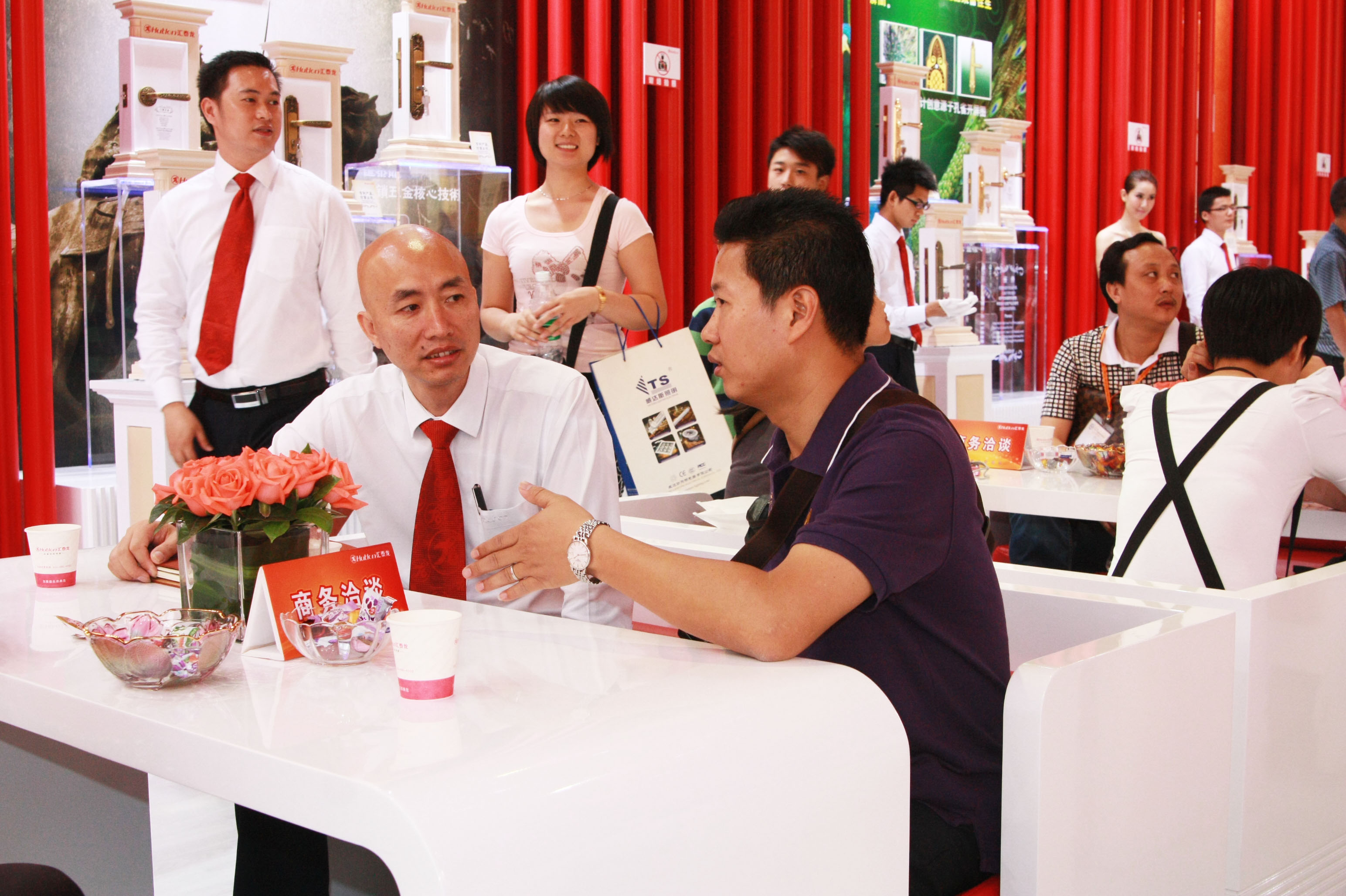 匯泰龍品牌推廣部經理劉東先生在和客戶朋友進行商務洽談