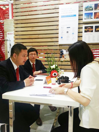 匯泰龍董事長(zhǎng)陳鴻填先生(左)與客商朋友在現(xiàn)場(chǎng)進(jìn)行商務(wù)洽談