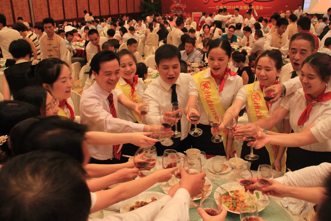 他對(duì)遠(yuǎn)道而來的貴賓及經(jīng)銷商朋友表示了熱烈的歡迎,激勵(lì)努力奮發(fā)的匯泰龍人共同朝著新的目標(biāo)進(jìn)取,發(fā)言結(jié)束后,陳鴻填先生邀請(qǐng)全場(chǎng)客人舉杯,大家一起為夢(mèng)想干杯!