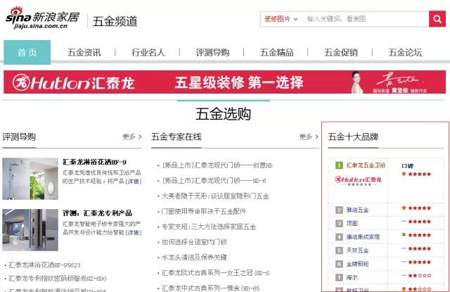 近日,由新浪家居五金頻道舉辦的《五金十大品牌》網(wǎng)絡(luò)評(píng)選結(jié)果正式公布,匯泰龍品牌榮獲網(wǎng)絡(luò)評(píng)選總評(píng)分第一名。