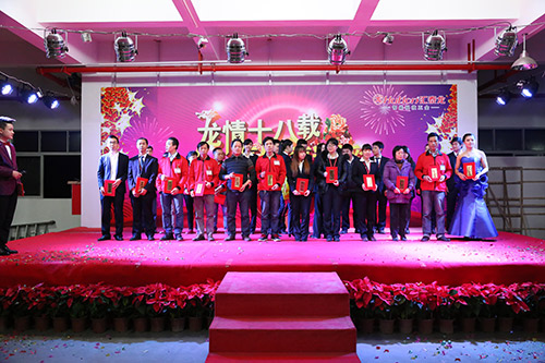 在本次晚會中,安排了2014年度優秀員工、效益標兵頒獎。公司陳董、徐總為工作業績和工作表現突出的“效益標桿”和“優秀員工”頒發了榮譽證書。