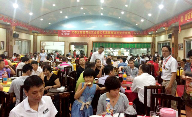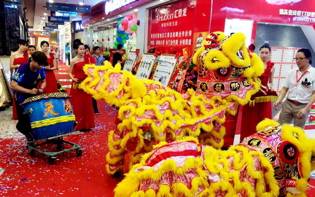 金獅生輝意融融,妙筆點睛展雄姿。經銷商鄔湘萍女士、聶云安先生共同為舞獅進行點睛,金色雙獅進行獅舞表演,惹的現場熱鬧非凡。匯泰龍智能科技五金東莞長安專賣店正式開業迎賓。在活動現場,還舉辦了現場砸金蛋、贏取電冰箱、大彩電、電風扇等助興活動。開業當天全場6.8折更是賺足了人氣。