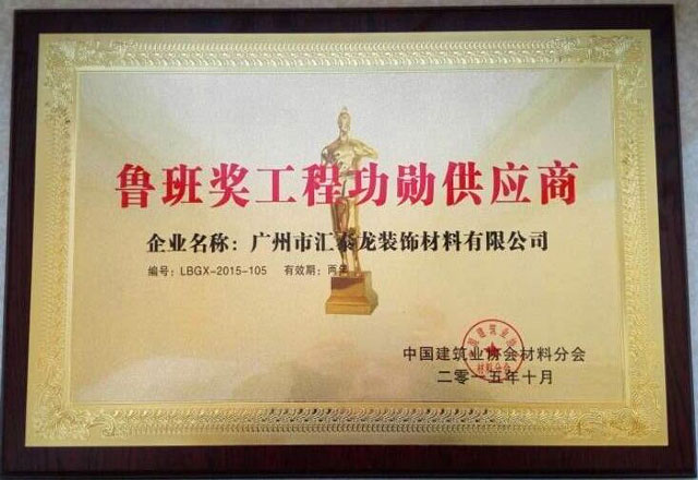 經過經自愿申報、用戶確認、審核初評、專家審定、網上公示等一系列嚴格的程序,匯泰龍公司被授予“2015年度魯班獎工程功勛供應商”榮譽稱號。