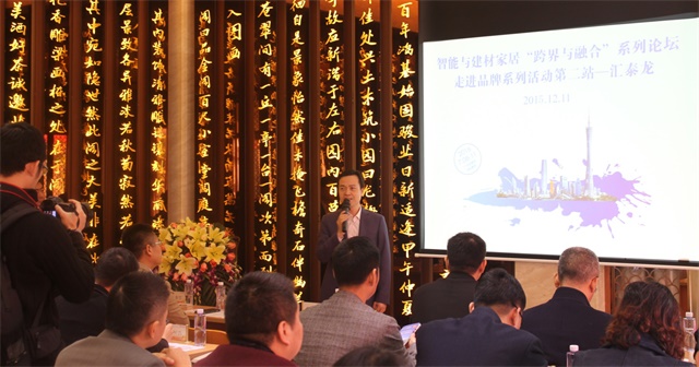 2015年12月11日,中國智能家居“跨界與融合”系列論壇之走進品牌活動在匯泰龍佛山公司隆重舉行。本次活動由中國建博會、全國工商聯家具裝飾業商會智能家居專委會主辦,深圳市五尚空間有限公司、深圳市英杰思科技有限公司承辦,匯泰龍公司協辦。活動得到了搜狐、網易家居、千家網、搜房網、太平洋家居網等媒體的大力支持。