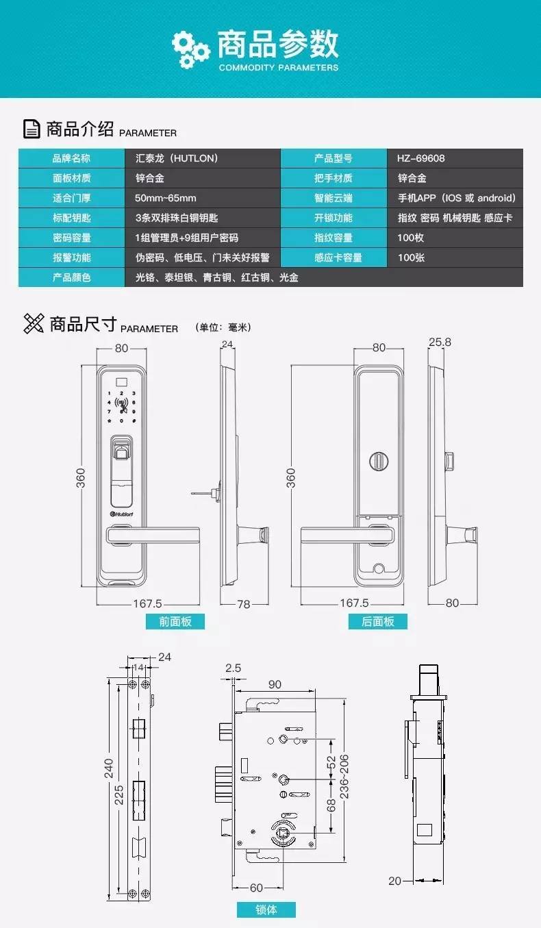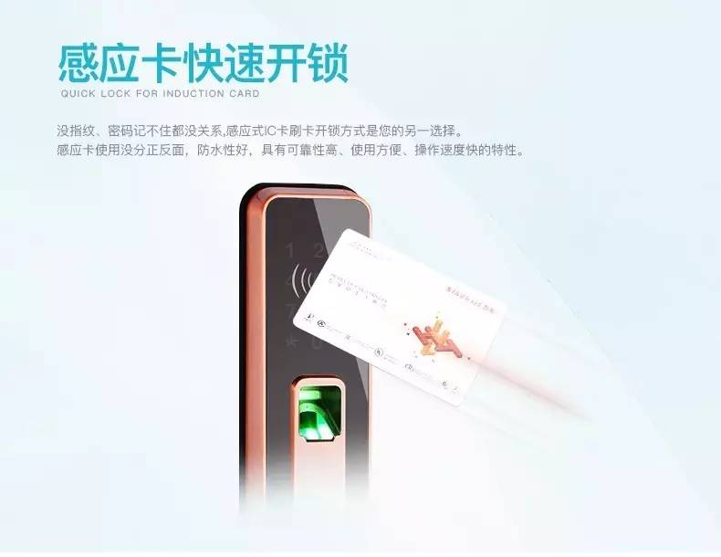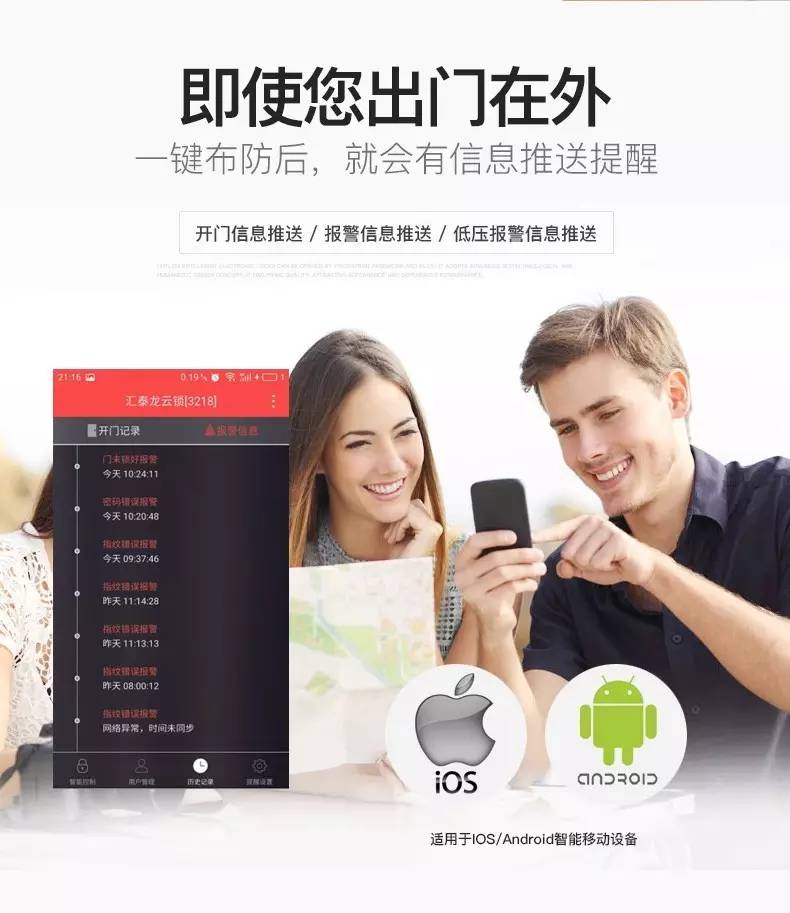 匯泰龍云鎖采用先進的生物識別技術,擁有指紋、密碼、感應卡、機械鑰匙、手機APP五合一開鎖方式,指紋輕觸間實現開鎖,配有真人語音提示,且擁有低電量雙重提醒功能。擁有十幾項發明專利,幾十項實用新型專利,集便捷、安全于一身。