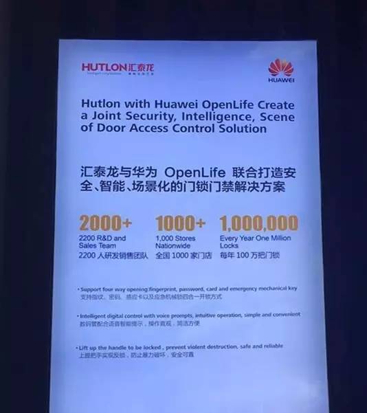 特別值得一提的是,匯泰龍云鎖還能與智能家居系統互聯,2016年,匯泰龍云鎖先后與華為OpenLife智慧家庭生態和京東微聯實現對接,在確保家庭安防的基礎上,實現門鎖門禁與其他智慧家庭生態系統實時聯動,給智慧家庭各種場景模式提供信息入口。簡單來說,用戶幾乎可以通過APP觸及到所有的服務,真正做到物物相連,獲得更人性化的生活體驗。