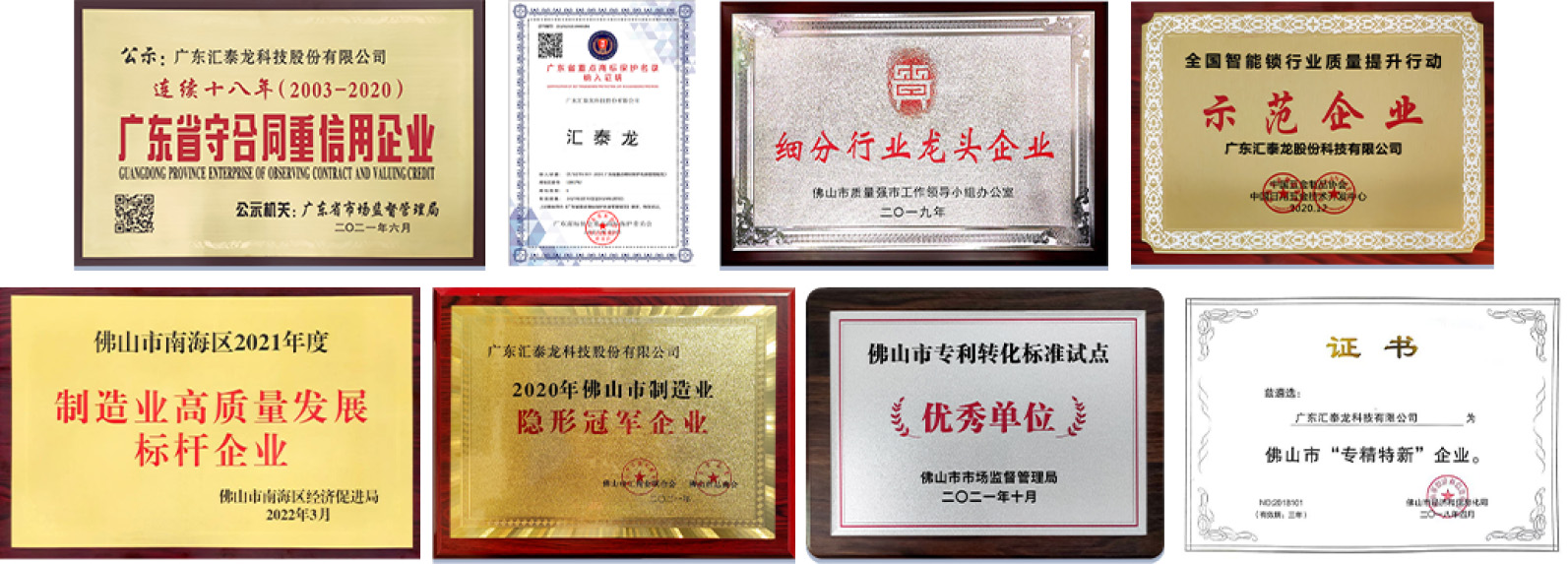 ”廣東省名牌產品“ ”十大智能鎖品牌“、”十大優選家居五金品牌“