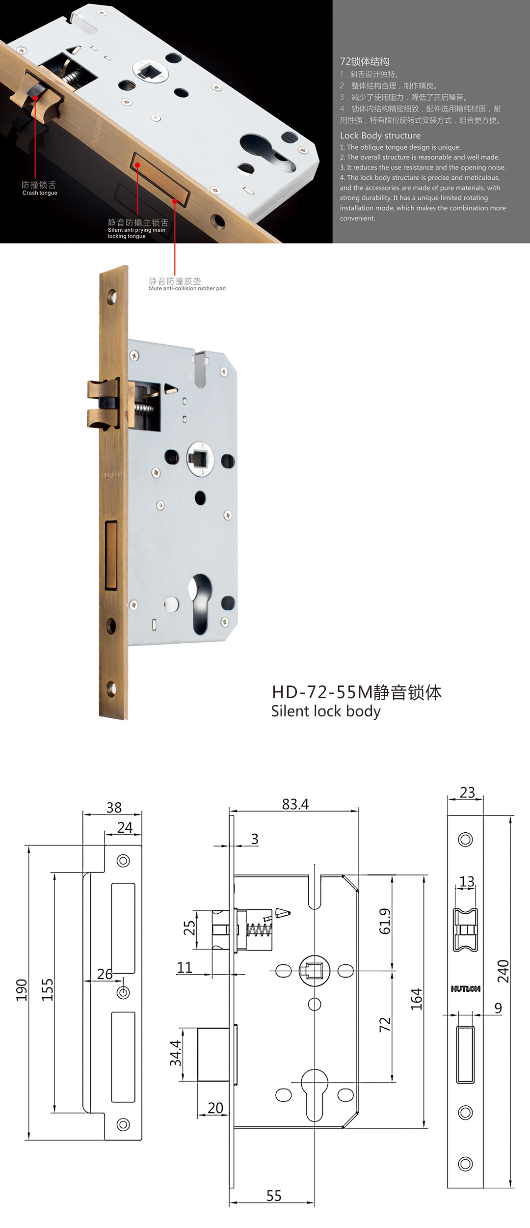 HD-72-55M 靜音鎖體