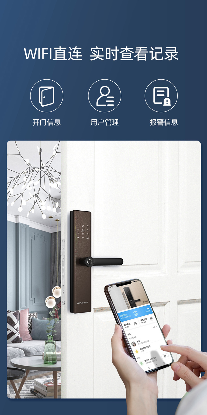 聯(lián)網(wǎng)功能;APP可實(shí)時顯示開鎖、報警等信息,可遠(yuǎn)程生成臨時密碼開鎖,門鎖用戶管理與設(shè)置等操作,更加安全、人性化與便捷;