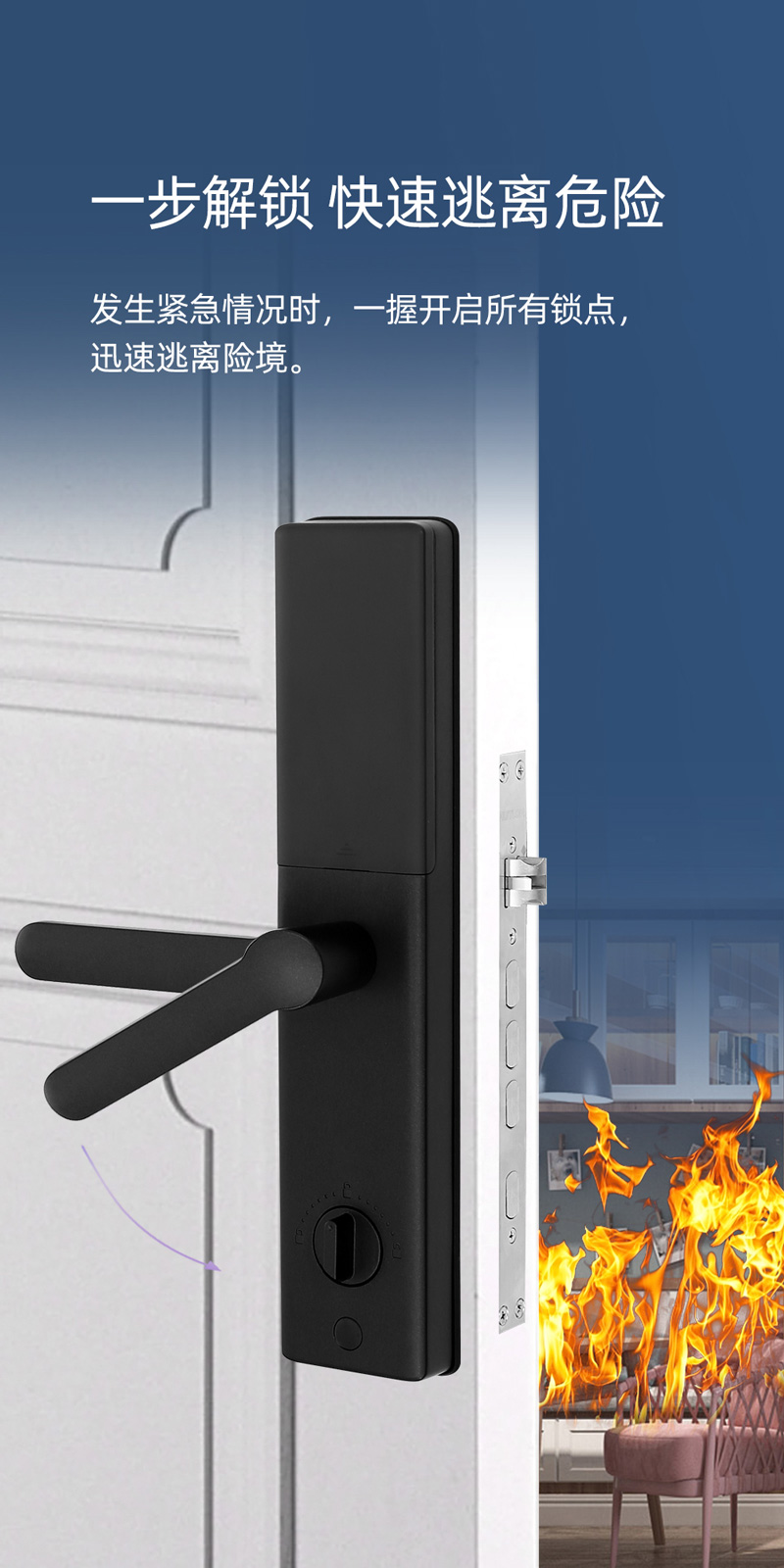 上提實(shí)現(xiàn)反鎖,把手游離設(shè)計,防止暴力破壞,安全可靠;
