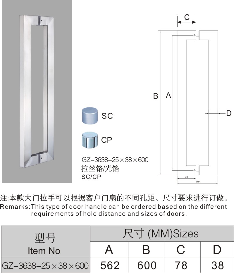 GZ-3638-25×38×600大門拉手
