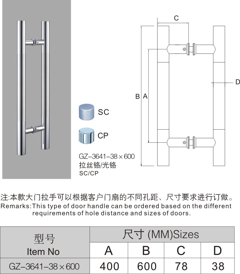GZ-3641-38×600大門拉手