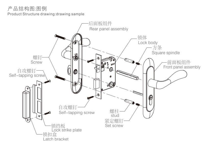 6擰緊螺釘,安裝扣板及扣盒,對齊鎖體,應使鎖舌與之配合順暢,擰緊螺釘(如上圖:H)。