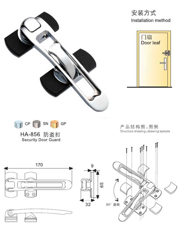 主要功能:鎖扣門扇、防盜