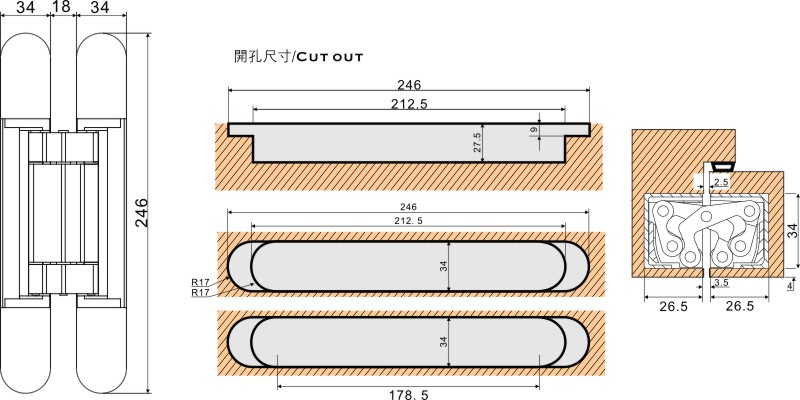 HA-81623-120 三維可調暗鉸鏈