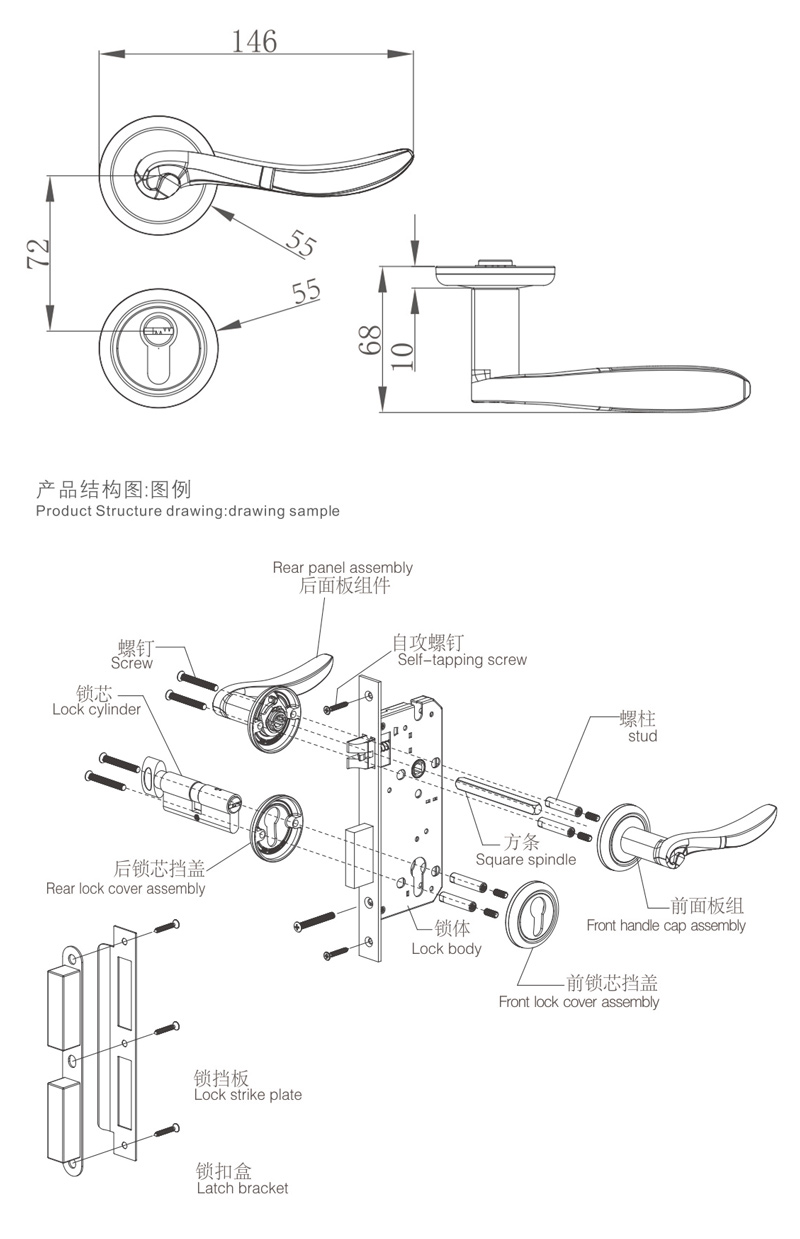 3將方桿穿過門板插入鎖體(如下圖:D)。